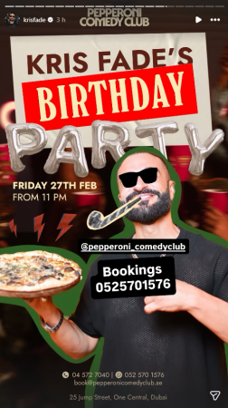 Adding to the January momentum, Kris Fade’s official birthday party is scheduled for Friday at 11pm at Pepperoni Comedy Club in Dubai. The venue, part of his restaurant and comedy concept, keeps his presence strong in the city’s nightlife and entertainment circuit.