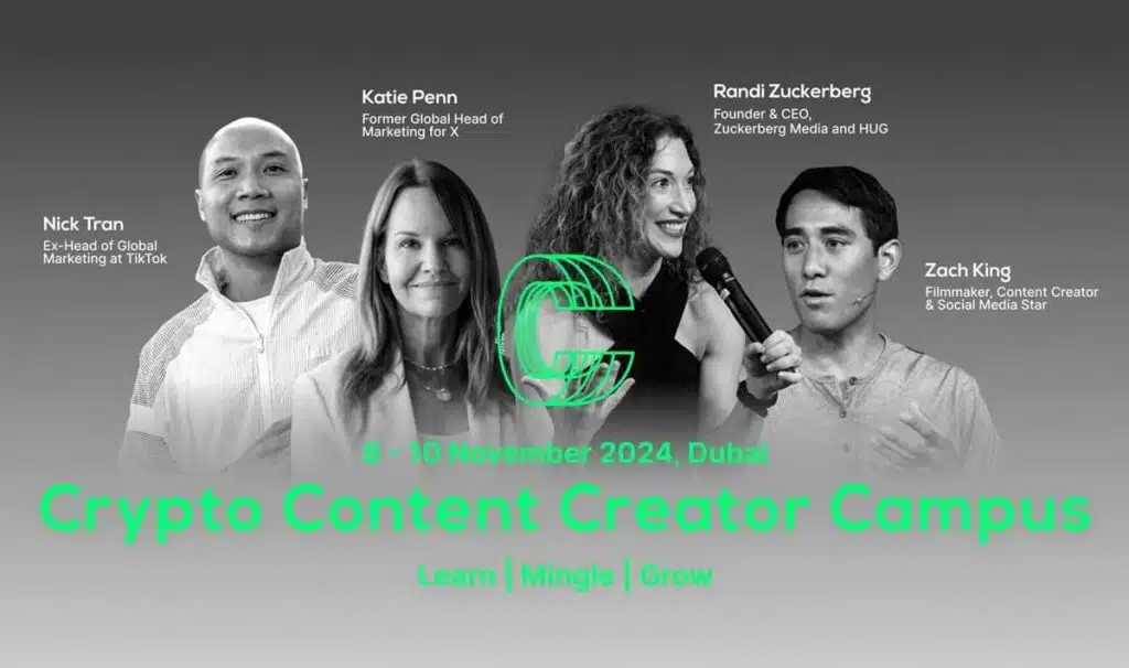 For the purpose of a decentralised attendance, the Crypto Content Creator Campus (CCCC) 2024 will be held in Dubai at W Palm Dubai on 9th and 10th of November. This two-day virtual event whose vision is to map the future of the content creator economy will feature influential players from media, marketing, and cryptocurrency.