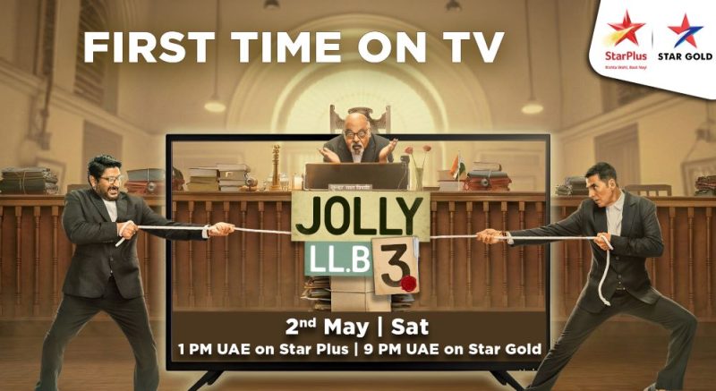 Film: Jolly LLB 3 Channel: StarPlus Middle East Date: Saturday, May 2, 2026 Time: 1 PM Starring: Akshay Kumar and Arshad Warsi