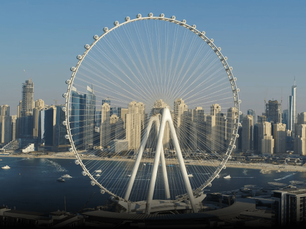 Ain Dubai stands as the tallest observation wheel in the world at a height of 250 meters. Located on Bluewaters Island, the wheel officially opened to the public on October 21, 2021. Its cabins offer panoramic views of the city skyline, coastline, and major landmarks.