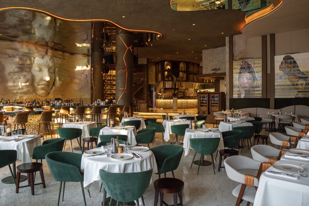 The menu travels across continents, offering everything from sushi and caviar to pasta and grills. It’s glamorous, theatrical, and unapologetically extra.