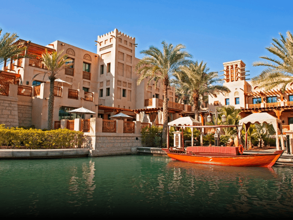 Souk Madinat Jumeirah offers a different angle on one of Dubai’s most photographed landmarks. Instead of beach shots, visitors board abra boats that move through the canals linking hotels and restaurants. From the water, photos capture wooden boats, arched bridges, and the Burj Al Arab in one frame. The movement of the abra allows multiple angles during a single ride, which has turned this route into a popular choice for content creators looking for variety.