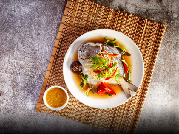A whole fish is essential for the New Year feast. In Mandarin, “Yu” (fish) sounds like the word for surplus or abundance. Serving it whole symbolises completeness and a prosperous year ahead. Steamed with ginger, scallions and soy sauce, it is light yet deeply aromatic.